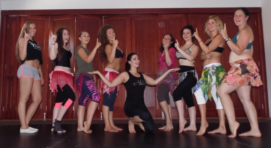 Ugyanez volt a szitu az elmúlt években is a hastánctáborokkal. Jó, eleinte azért összeakadt pár agysejt odabent, hogy hastáááánc, meg táááábor, há’ noooormális? Kicsit küzdött bennem a gyerek, hogy ez így nagyon nyomin hangzik, de aztán végül, amikor eltoltam az arcocskámat egy ilyenbe, azóta ezt is jó bulinak tartom 🙂 Voltam már hastánctáborban csak simán “nettó” résztvevő annyi feladattal, hogy kitöltsem a rendelkezésemre álló teret, aztán meg kistanár, reggeli jóga náci (hastánctáborban reggel 8-kor jóga órát csakis roggyantak tartanak, de az se komplett, aki részt is vesz rajta 😀 ). Viszont most volt idén először, hogy kolleginámmal, Sárközy Zsuzsó Shererah-val mi voltunk A TANÁROK. Én, mit sem sejtve, boldogan és lelkesen rámondtam az áment, mert azt gondoltam, hogy kb. olyan lesz majd, mint tartani egy 2-3 órás workshopot. Aha…ja nem!